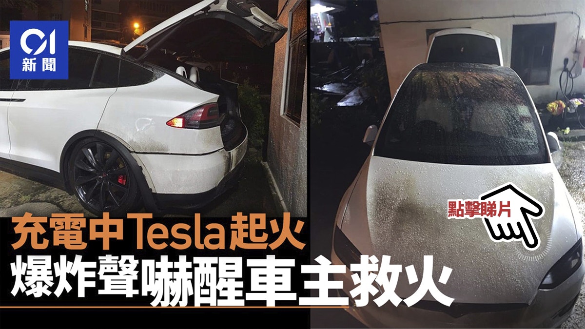天水圍二手Tesla疑充電期間起火車主睡夢中驚醒及時撲熄 - 香港01