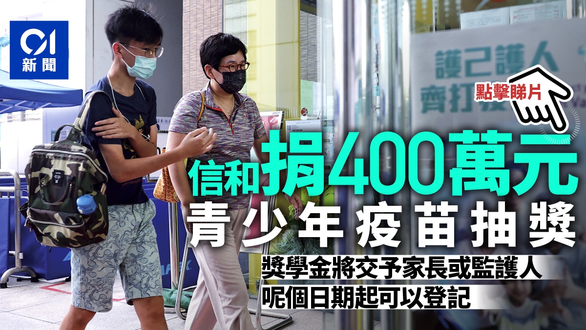 為提高青少年的新冠疫苗接種率,信和集團今(9日)宣布,旗下黃廷方慈善基金將捐出20份、每份價值20萬元的獎學金,送予12歲至17歲接種疫苗的青少年抽獎,總額400萬元。有興趣青少年可於9月2日起到抽獎網站登記,較早前已接種一劑或兩劑疫苗的青少年亦符合參加資格。獎學金將以預付卡簽賬額或信用卡免找數簽賬額形式發放予得獎者的家長或監護人。