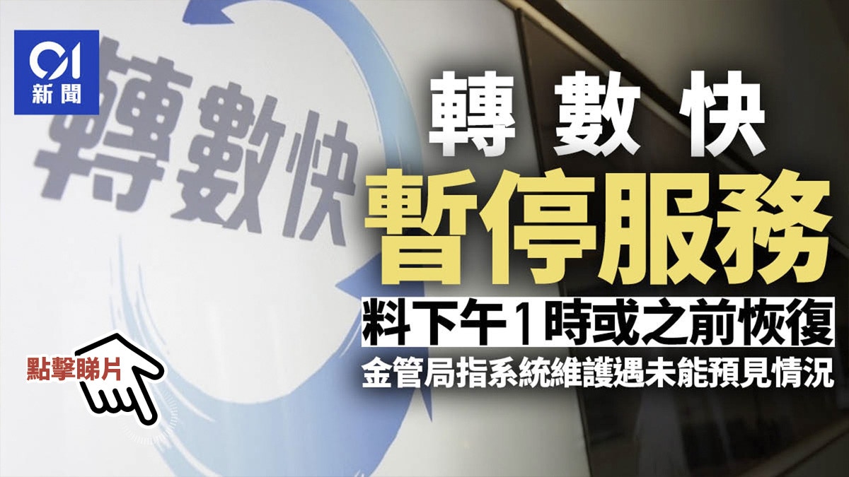 轉數快額外暫停5小時後下午1時恢復金管局:較過往維護工程複雜 - 香港01