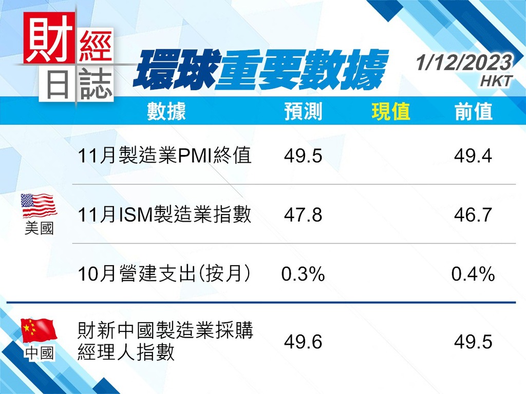 【23:00】【美國經濟數據】美國ISM製造業指數46.7 遜預期